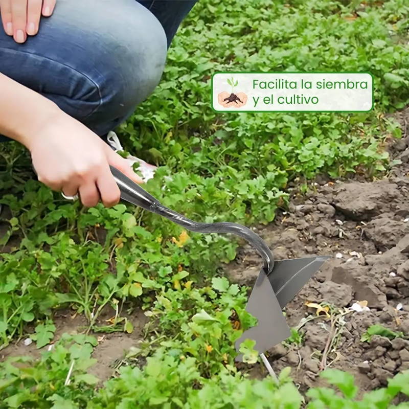Anhelas la comodidad y la eficacia en cada tarea de jardinería. Con nuestra azada triangular, podrás deshacerte de la maleza con facilidad, aflojar el suelo sin esfuerzo y plantar tus verduras favoritas con precisión milimétrica.