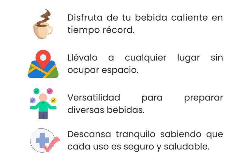 Imagina un hervidor que se pliega para caber en tu mochila, listo para calentar agua en solo 4 minutos. Ideal para acampar, viajar o simplemente disfrutar de una buena taza de café caliente en cualquier lugar.
