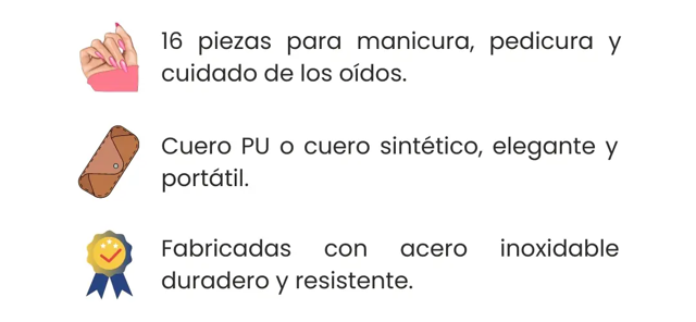 Presentamos el Kit de belleza y manicura de 16 piezas con estuche de cuero, tu aliado perfecto para un cuidado integral de tus manos y uñas.