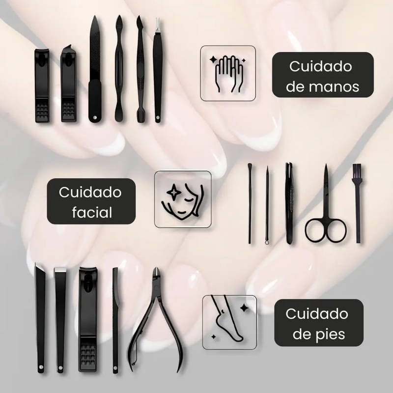 Nuestro kit de belleza y manicura profesional de 16 piezas te ofrece todo lo que necesitas para lograr una manicura perfecta en la comodidad de tu hogar.
