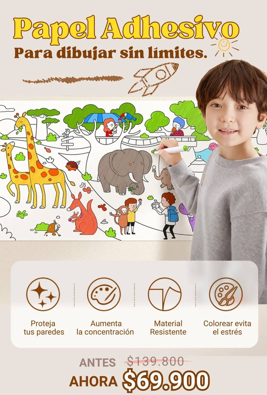 Deja que tus hijos expresen su creatividad sin restricciones. Nuestro papel adhesivo se adhiere a las paredes de manera segura y permite que los niños pinten, dibujen y exploren su imaginación.